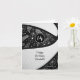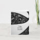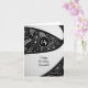 Este convite de cartão de aniversário de basquete fofo apresenta a imagem realista de uma bola de basquete estilizada e abstratamente superdimensionada que tem painéis alternados recoloridos em preto e branco na frente do cartão - um padrão de rabiscos de paisleys, flores e penas em branco cobre os painéis pretos da bola de basquete - personalize com sua própria mensagem de aniversário - por katz_d_zynes
