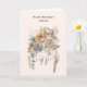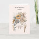 Cartão de aniversário com um bonito buquê de flores em cores neutras de castanho, pêssego e laranja. Um apanhador de sonhos com penas adiciona um elegante talento místico.