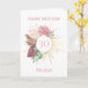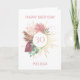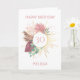 Cartão de aniversário de Trendy Boho que você pode personalizar para qualquer idade e qualquer nome. O design inclui capim de aquarela, folhas de eucalipto, folhagem e salpicos com mandala dourada, amor radiante e luz. O modelo está configurado para que você adicione qualquer idade e qualquer nome; você também pode editar a mensagem dentro.