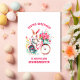 Celebre as Páscoas feriadas enviando sua neta favorita [ou personalize] nosso cartão de "Saudações Páscoas!"! Uma representação de aquarela fofa do coelho da Páscoa cavalgando rosas rosa de carregando de bicicleta.