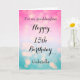 Um cartão de aniversário de 15 para a neta, que você pode personalizar facilmente com o nome dela. Dentro, este único cartão de aniversário de um livro, rosa e azul, lê uma mensagem de aniversário sincera, que também pode ser personalizada se quisermos. Isso faria uma única vitória de aniversário para ela.