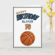 Bola de Basquete Feliz Cartão de Aniversário. Um cartão de aniversário desportivo personalizado moderno com uma bola de basquete, nome e idade. Você pode alterar qualquer texto na placa e dentro na placa.