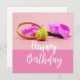 Tênis com raquete no cartão de aniversário cor-de-rosa