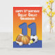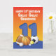 Na frente deste cartão temos o número onze como a peça central rodeada por uma coleção de diferentes bolas desportivas. Você definitivamente adivinhou, este cartão é para um neto excelente fanático desportivo que celebra um aniversário de 11.
