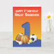 Os meninos amam bolas e tão cedo quanto ele completa um ano você já pode presentear seu neto com um cartão cheio de bolas esportivas para o seu 1º aniversário que acontecerá em um futuro próximo.
