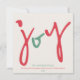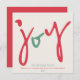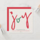 Estes cartões de cartões de natal minimalistas de 5,25" x 5,25" apresentam a saudação, "alegria", em uma grande fonte vermelha e verde divertida com a saudação editável adicional, "Desejando paz, amor e alegria nesta temporada de férias." Basta adicionar seu(s) nome(s) familiar(s) e ano.