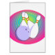 Três saias de boliche sendo derrubadas por uma bola de boliche.
