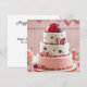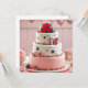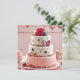JOANINHA FOFINHA VERMELHA E PRETA EM UM BOLO DE ANIVERSÁRIO DE CAMADAS NA FRENTE DO CARTÃO. CÓPIA TOTALMENTE EDITÁVEL NO VERSO.