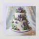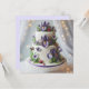 BONITO BOLO DE ANIVERSÁRIO DA CAMADA COM ICING BRANCO E PURPLE EXQUISITO IRIA DECORAÇÃO NA FRENTE DO CARTÃO. CÓPIA COMPLETAMENTE EDITÁVEL NA PARTE TRASEIRA.
