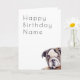 Cartão de aniversário com uma pintura aquosa de um Buldogue Inglês no canto inferior direito contra um fundo branco brilhante com letra de estilo Art Deco. Edite facilmente o texto modelo na frente e na dentro desta placa para personalizar a placa com sua própria mensagem. Na moda e um cartão minimalista para enviar a qualquer um no seu aniversário. Obrigados para ver as minhas designs!
