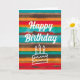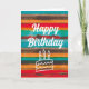 O fundo desta design é moderno e colorido, com faixas de aquarela em lacre, vermelho, laranja, cinza e marrom. Um bolo branco com velas e o texto "feliz aniversário". Você pode substituir o dentro de texto por seu próprio.
