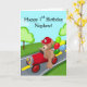 Este lindo ursinho de pelúcia, cavalgando um caminhão de bombeiros vermelho brilhante e orgulhosamente vestindo seu primeiro chapéu de bombeiro, faz o design perfeito para celebrar o marco do primeiro aniversario especial do seu sobrinho.