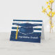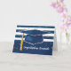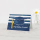 Cartão Boné de formatura Azul com Stripes e Confetti