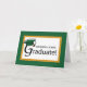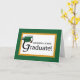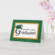 O verde escuro e o caimento dourado ao redor da placa enquadram a redação do formando do parabéns. Uma graduação verde escura que se senta sobre a capital G da graduação. Cartão perfeito para felicitar e desejar um futuro brilhante e bem-sucedido ao novo formando!