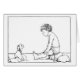 O rapaz pequeno que senta-se na praia que olha fixamente em uma boneca com um peixe dirige. Ilustração fascinante do livro "Bill o minder", escrito e ilustrado por W. Charneca Robinson em 1912. Esta imagem é do capítulo "os Acampamento-seguidores". "As cabeças dos peixes serviram as crianças mais novas para tijolos, ou mesmo, após um aparamento pequeno, para as bonecas, com que se divertiram durante as noites longas do inverno."