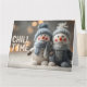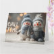 Cartão Bonecas de Neve Fofas com Chapéus de Tricô