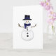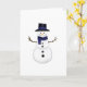 Espalhe um pouco de alegria invernal com este design caprichoso de boneco de neve! Apresentando um boneco de neve alegre vestindo um chapéu alto preto com uma faixa azul escura que combina com seu cachecol. Perfeito para enviar votos calorosos, saudações sazonais ou apenas um sorriso - em branco por dentro para que você possa escrever sua própria mensagem sincera.