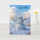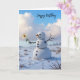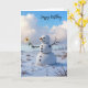 Cartão Boneco de Neve de Aniversário Segurando uma Margar