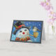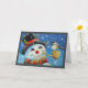 Cartão Boneco de Neve de Inverno e Pássaro Chapim Arte em