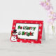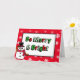 Tipografia de boneco de neve e flocos de neve com Alegre e Brilhante em vermelho e verde em cartão de Natal.