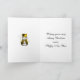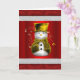 Um simpático boneco de neve dourado, vestido com colete de veludo dourado e cartola, com estrelas e laços ao seu redor, sobre um fundo vermelho metálico. Ele é emoldurado por veludo vermelho (apenas impresso) e pelo pelo branco do traje de Natal do Papai Noel. A mensagem interna diz "Desejando a você um muito feliz Natal e um Ano Novo feliz" pode ser personalizada.