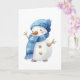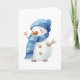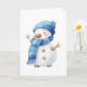 Cartão Boneco de Neve em Aquarela com Cachecol Azul