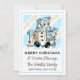 Cartões de Natal personalizados desenhados à mão com boneco de neve azul fofo com cachecol e luvas segurando luzes de Natal.