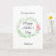 Um laurel verde de aquarela e flores cor-de-rosa bonito Cartão Feliz de sobrinha de Dia de as mães, que você poderá facilmente personalizar a frente com o nome dela. A mensagem dentro deste Dia de as mães bonito da sobrinha lê uma mensagem sincera, que você também pode personalizar se quiser. O dorso tem o mesmo louro de aquarela verde com flores cor-de-rosa com um lugar para você colocar os nomes da criança(ren) ou o que você quiser. Um doce Dia de as mães que é personalizado e certamente apreciado.