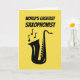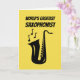 Cartão bonito do aniversário para jogador de saxofone do mundo o grande. O instrumento do saxofone com música nota o logotipo. Cartão bonito para o saxofonista, o jogador de saxofone, o professor de música, o músico de jazz, o artista, o pai, o filho, o neto, o membro do grupo, o amigo, o trabalhador do co, o chefe etc. Também disponível no tamanho grande da extra grande.