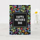 Este cartão bonito, gráfico floral e paisley do Dia das Mães, em azul, vermelho, rosa, laranja, amarelo e verde sobre fundo preto é perfeito para honrar sua mãe. Você pode editar a frase "Dia de as mães feliz" e o texto dentro o cartão para algo mais pessoal e especial.