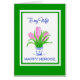 Um bonito Cartão de Saudação de Ano Novo Persa para uma Mulher, com um pote azul e branco de hífenes cor-de-rosa em uma borda verde e Feliz Noroz em azul, a partir de uma pintura de aquarela de Judy Adamson. Uma versão frontal personalizada deste design também está disponível e você pode personalizar a mensagem dentro deste cartão, se desejar.