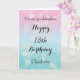 Um cartão de aniversário bonito, azul e rosa, de 18 anos para neta, filha, afilhada, etc. Você será capaz de personalizar facilmente a frente deste lindo cartão de aniversário de 18 anos com o nome dela. A mensagem da placa dentro também pode ser editada. Isso faria um cartão de excelente aniversário para seu aniversário de 18 anos.