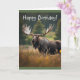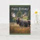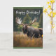 Este cartão de aniversário tem um alce na natureza.