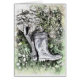 Depois que o jardineiro terminou de trabalhar no jardim, essas botas à prova d'água foram deixadas na parede do jardim.