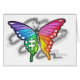 Desenho original de Sandra Gale de uma bela borboleta sombreada arco-íris com um buraco quebra-cabeça em forma de peça na asa. design de excelente para crianças, jardineiros e promotores de conscientização autista.