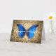 Cartão Borboleta azul damasco Parabéns Arte vintage