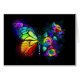 Arco-íris, borboleta monarca luminosa, pintada artisticamente com buquê de rosas iridescentes, brilhantes e luminescentes sobre fundo preto. Borboleta-arco-íris.