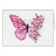 Arranjo de flores de borboleta cor-de-rosa com cereja japonesa cor-de-rosa floresce em fundo branco.