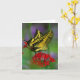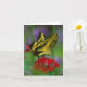 Uma imagem inspiradora de uma borboleta amarela empoleirada em uma flor vermelha. Este é um belo cartão de nota que qualquer um ficaria feliz em receber.