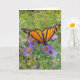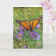 Uma bela fotografia de uma bonito borboleta monarca sentada sobre flores roxas.