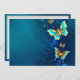 Ouro voador, borboleta de joias em fundo textural azul. Design com borboletas.