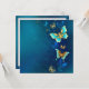 Ouro voador, borboleta de joias em fundo textural azul. Design com borboletas.