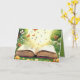 Borboletas de verão explodindo de um livro aberto em um campo de aniversário. O texto é editável.
