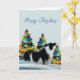 Cartão Borda Collie na Árvore de Natal da Neve de inverno