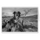 Bordo collie em vigia em uma paisagem de carst stone com um espinho-de-dorso no fundo - tirada no Yorkshire Dales, na Inglaterra.