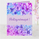 Bordas florais roxas com aspecto aquoso - grande cartão de saudação impresso por Alma Wad. Vem com o texto "Boldog Nevnapot!" que significa "Happy Name day" em húngaro.
