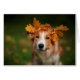 Cartão Border collie vermelho com uma festão das folhas