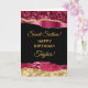Esse doce e elegante cartão de aniversário de dezesseis anos pode ser personalizado com um nome ou título como filha, neta, sobrinha, amiga etc. O design apresenta lágrimas de brilho vermelho e vermelho-burro e ouro falso em fundo preto. O texto combina o script manuscrito e as fontes sans serif modernas para um aspecto elegante e sofisticado.