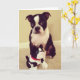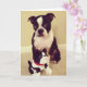 Paloma a Boston Terrier que levanta com um luxuoso enchido de Boston Terrier que quisesse manter para si mesma.