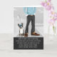 Boston Terrier tem uma cabeça bonita e veste um chapéu para combinar sua camisa de pai e óculos de sol enquanto ele se senta com seu humano neste cartão de Dia de os pais divertido do cachorro.